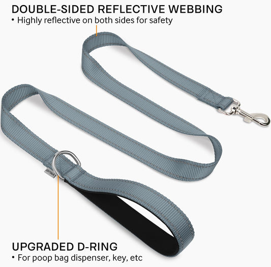 Double-Sided Reflective Dog Leash, 6 FT/5 FT/4 FT, Padded Handle Nylon Heavy Duty Leashes for Small & Medium Dogs Walking, Gray, 5FT