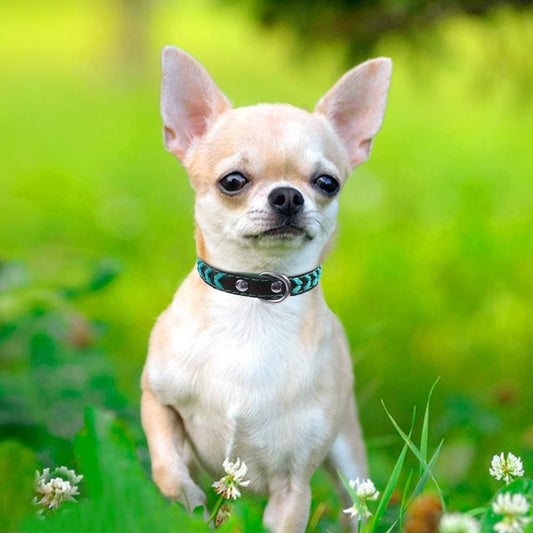 Leather Dog Collar for Puppy, Stylish Braided Padded Dog Collars with Double D-Rings for Girl and Boy Dog, Teal Blue XS