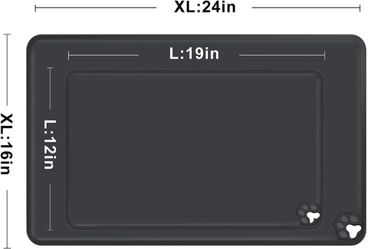 Dog Food Mat, Dog Food and Water Mat, Dog Bowl Water Mat, Dog Food Mat Silicone, Dog Waterproof Food Mat, 24" X 16" Dog Food Eating Mat, Washable Dog Mat for Dog Food, Pet Food Mat (L Black)