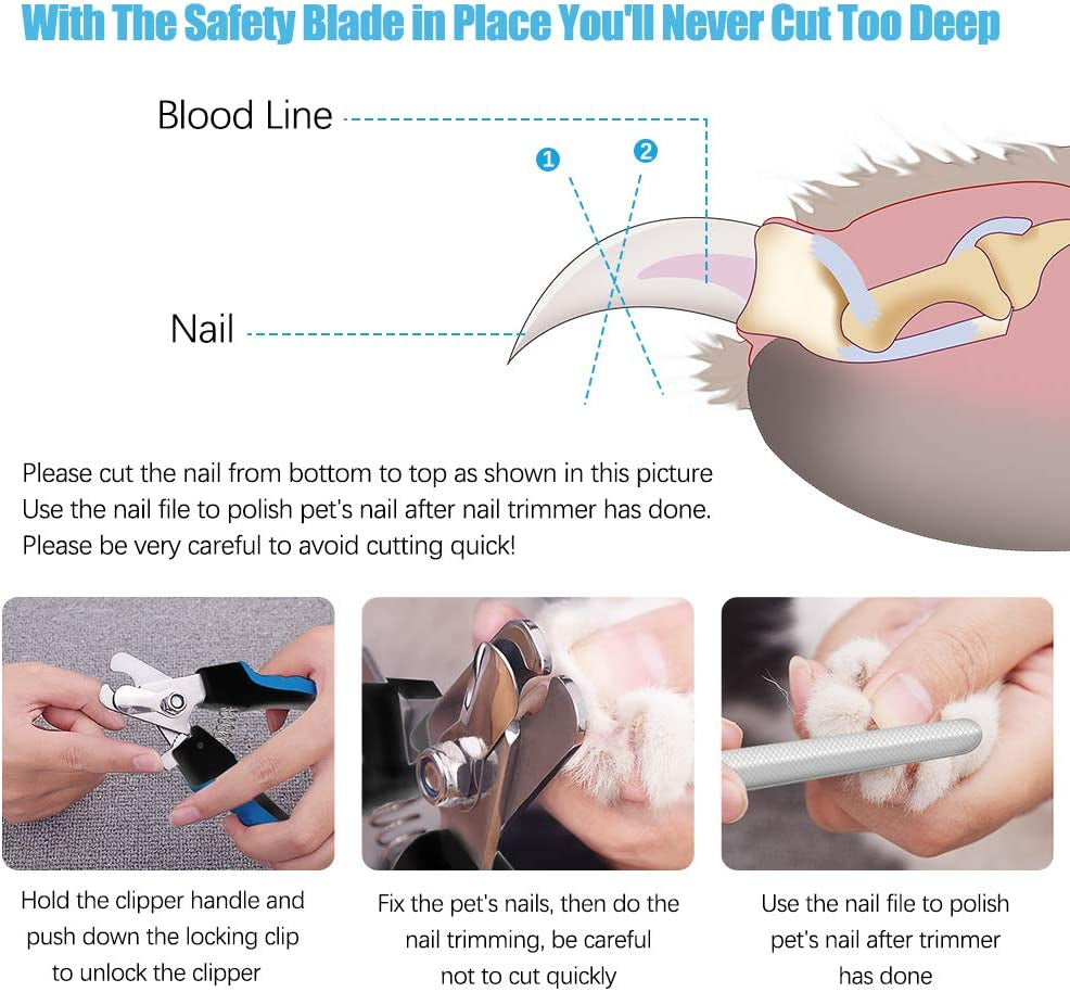 Dog Nail Clippers and Trimmer Set, Stainless Steel Non Slip Handles & Razor Sharp Blades, Safety Guard to Avoid Over-Cutting, Grooming Tool for All Small Large Pets(Blue Black)