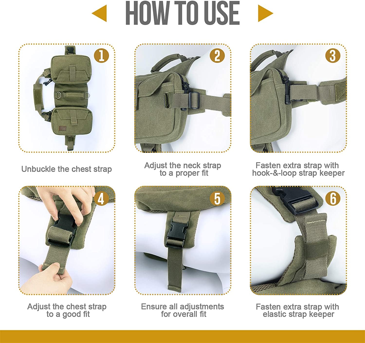 Dog Pack Hound Travel Camping Hiking Backpack Saddle Bag Rucksack for Medium & Large Dog (Ranger Green, Large)