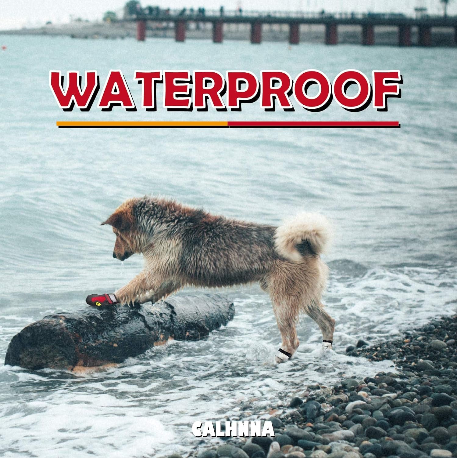 Dog Shoes for Medium Large Dogs, Waterproof Dog Snow Boots Dog Booties Paw Protectors with Reflective Straps Rugged Anti-Slip Sole 4PCS