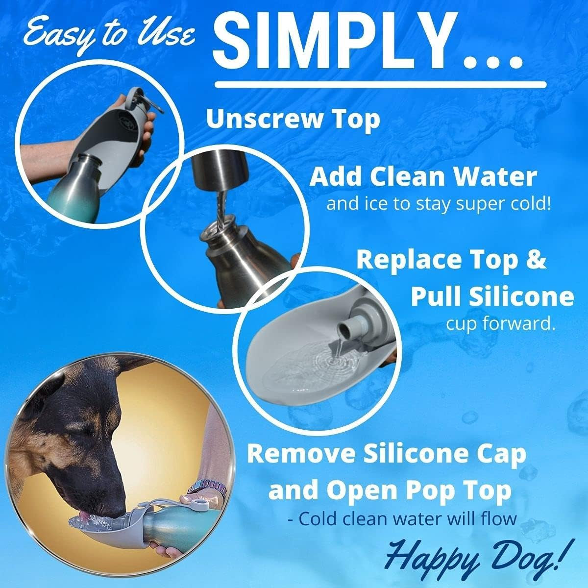 Dog Water Bottle, 20 OZ Leak Proof Stainless Steel Portable Dog Water Bottles for Walking, Hiking & Travel, Bpa-Free